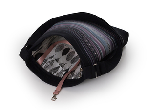 Malovaná Duhová kabelka je určená k nošení křížem přes tělo. Má jedno dlouhé ucho, jehož délku můžete zkrátit nebo prodloužit podle potřeby až do 150 cm. Kabelka je ušitá z pevného bavlněného materiálu, vyztužená a uzavíratelná na zip. Navzdory své velikosti se pohodlně nosí, protože je lehká. Zadní strana kabelky s kapsou na zip je bez malby. Uvnitř kabelky je další kapsa na zip, dvě otevřené kapsičky (např. na mobil, brýle, kapesníčky) a jedna úzká kapsička na tužku. Užitečná je i karabinka na klíče, která je všitá uvnitř kabelky na stužce. Kabelka je ošetřená impregnací kvůli odolnosti proti vlhkosti a nečistotám. Všechny kabelky jsou pomalované kvalitními barvami a konturami, které jsou k povrchu látky zafixované zažehlením, proto je možné kabelky v případě potřeby vyprat v ruce. Materiál: Vrchní látka a ucho je ze 100% bavlny (kepr), podšívka je z kvalitního 100% bavlněného plátna. Kabelka je zpevněná textilní netkanou výztuží (56% polyester, 14% viskóza, akrylátové pojivo). Malba z kvalitních barev a kontur na textil, které nelze vyprat. Povrchově ošetřeno impregnací.