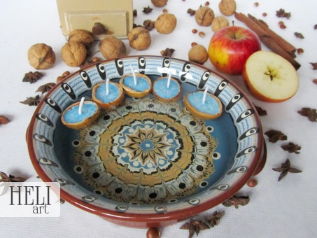 Plovoucí svíčky vyrábím z očištěných skořápek vlašských ořechů, tvrzených knotů upevněných v plíšku a neparfémovaného přírodního palmového vosku, který zabarvuji rozpustnými barvivy. Konec knotu svíčky je povoskován kvůli lepšímu zapalování svíčky. Lodičky pěkně plavou a nepotápí se. Délka doby hoření je 20 až 30 minut podle velikosti ořechové skořápky. Váha a velikost svíček se mírně různí podle toho, jak velké ořechy na zahrádce urostou.