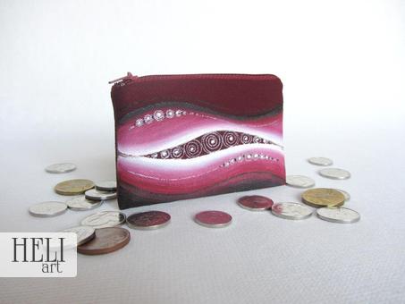 Maličká peněženka na kovové mince nebo klíče. Je uzavíratelná na zip a jednostranně pomalovaná. Uvnitř každé taštičky je všitý kroužek na klíče. Pokud jej nepotřebujete, dá se snadno odstřihnout a z klíčenky je rázem mincovka.