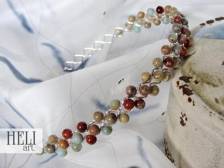 Materiál: jaspis, bižuterní drát galvanizovaný s měděným jádrem, návin z nerezového drátku, pojivo - cín