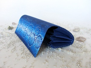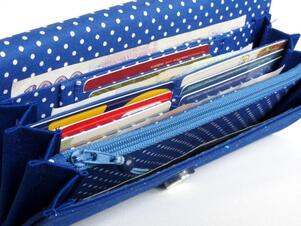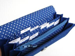 Prostorná harmoniková peněženka celá zdobená ruční malbou, ušitá z kvalitní bavlněné látky, se zapínáním na magnetický patent. Peněženka dobře drží tvar díky pevné textilní výztuži. Obsahuje velkou kapsu na zip pro kovové mince, přihrádky na karty a velké kapsy na bankovky (všechny druhy českých bankovek se sem vejdou v rozloženém stavu).
