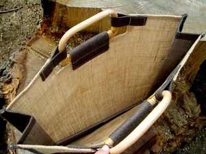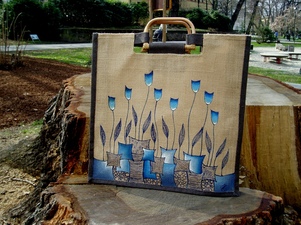 Materiál: 100% přírodní jutová tkanina, výstelka z PVC fólie, uši z bambusu. Kresba z nevypratelných barev a kontur fixovaných za horka.