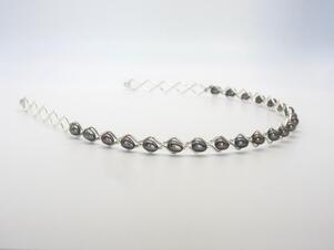 Každá perlička má dírku, je navlečena na nerezovém drátku a přidrátována k základnímu vlnkovanému drátu čelenky. Širší čelenky jsou ve srovnání s jednořadými perlovými čelenkami poměrně těžší, skládají se totiž ze 60 perel a váží v průměru 23g.